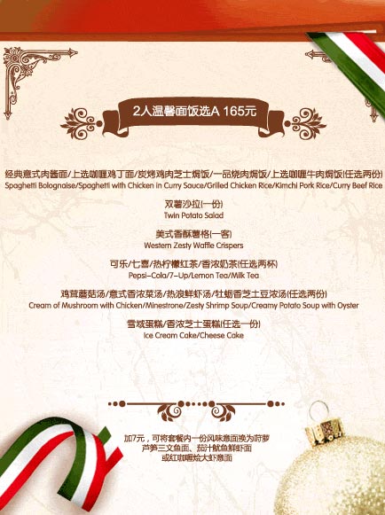加7元,可將套餐內一份風味意面換為蒔蘿蘆筍三文魚面、茄汁魷魚鮮蝦面或紅咖喱燴大蝦意面