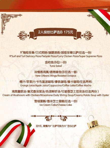 加9元,套餐內9"比薩可換為10"芝心比薩