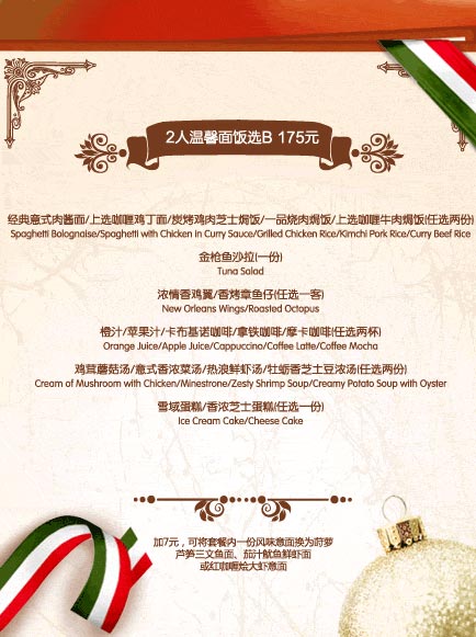 加7元,可將套餐內一份風味意面換為蒔蘿蘆筍三文魚面、茄汁魷魚鮮蝦面或紅咖喱燴大蝦意面