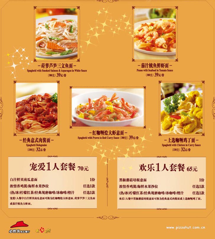 套餐中黑椒蘑菇培根意面可換為經典意式肉醬面或上選咖喱雞丁面。