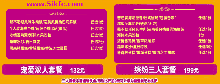 寵愛雙人套餐 132元,繽紛三人套餐 199元